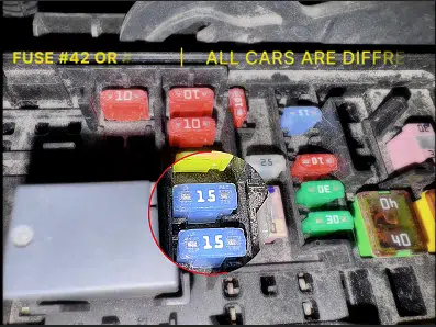 Open the fuse box by pressing the two tabs and lifting the lid. Locate fuses #42 or #43. I used fuse #43 for my install. Use nose pliers to remove the fuse, insert your new fuse tap, and make sure it’s seated firmly.