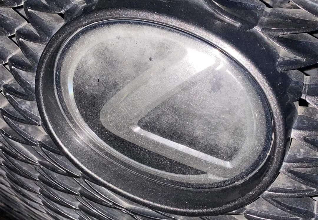 The Lexus emblem has edges and curves. Dirt can get stuck in these areas.
