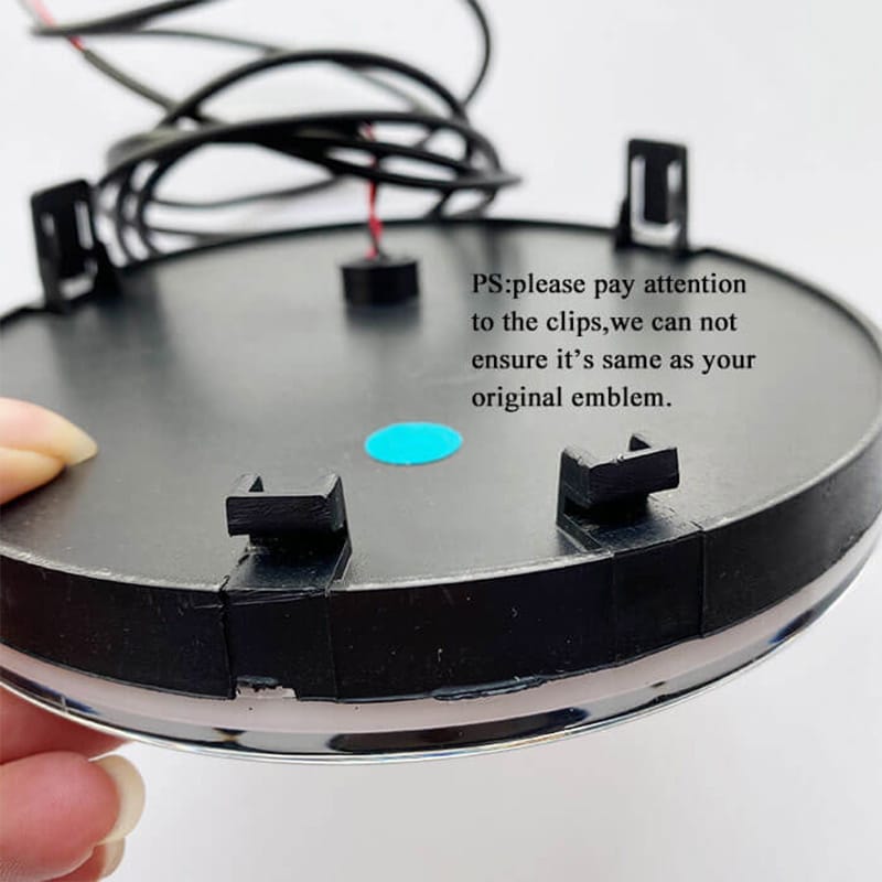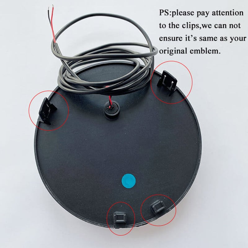 Note: The power supply required is 12V and 3W. Using a power supply over 12V may damage or burn out the emblem light.