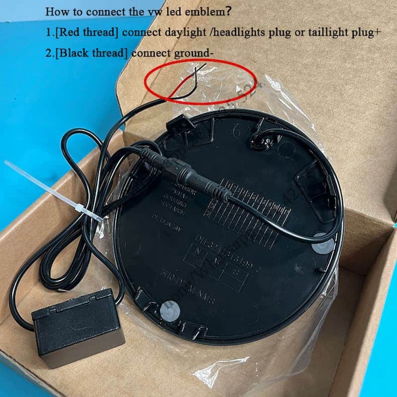 Note: The power supply required is 12V. Using a power supply over 12V may damage or burn out the emblem light.